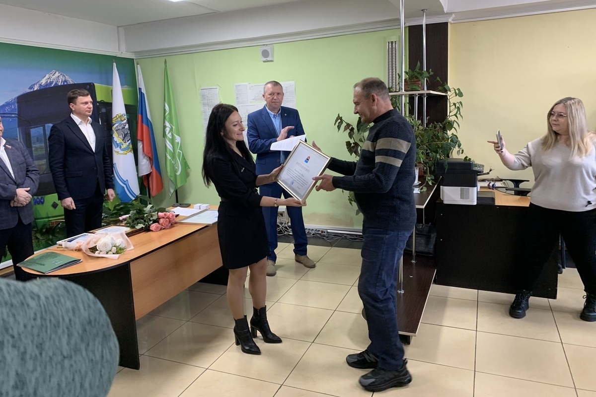 Председатель городской Думы Андрей Лиманов вручил благодарности диспетчерам отдела эксплуатации Анне Лунёвой и Виктории Калининой, бухгалтеру 1 категории Ольге Марченко, а также водителям регулярных городских пассажирских маршрутов Равшанбеку Дехканову, Маматысу Кутубекову.